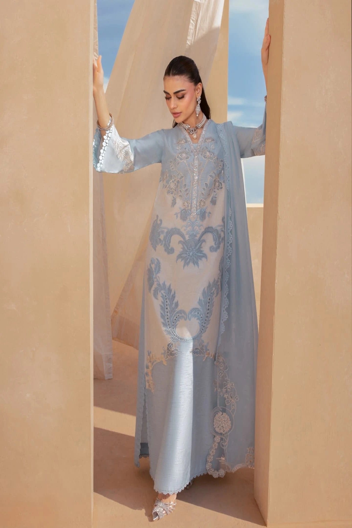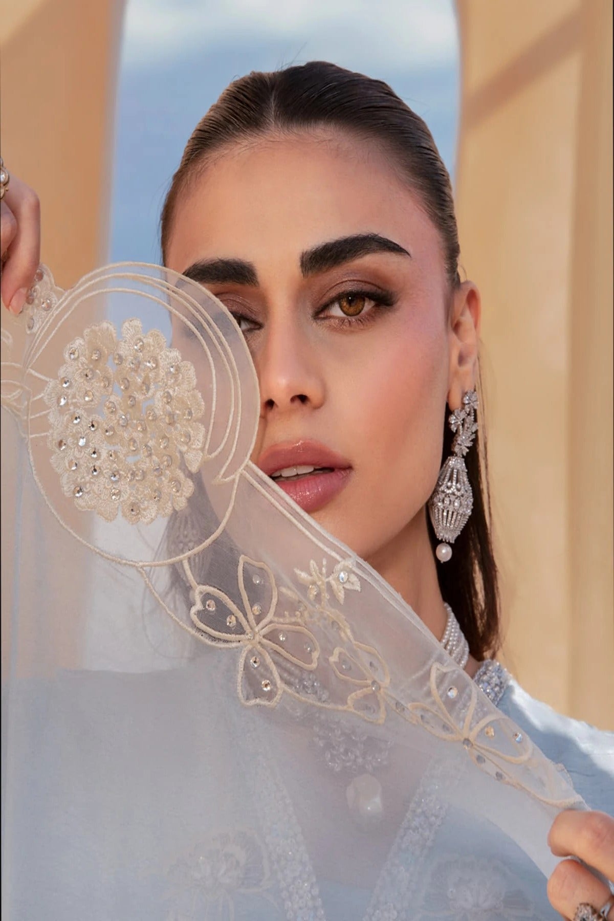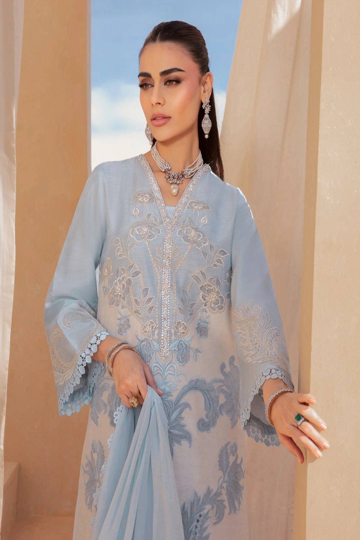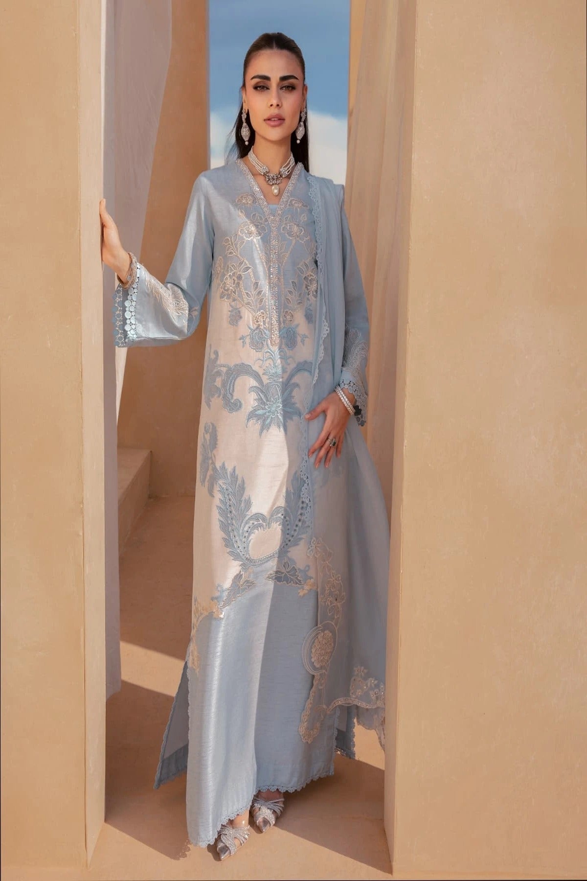 A serene artwork of craftsmanship in soothing blue hues which is meticulously created with subtle details and expound stitches. For this season,elevate your aesthetic game with an ensemble that epitomizes opulence and class.