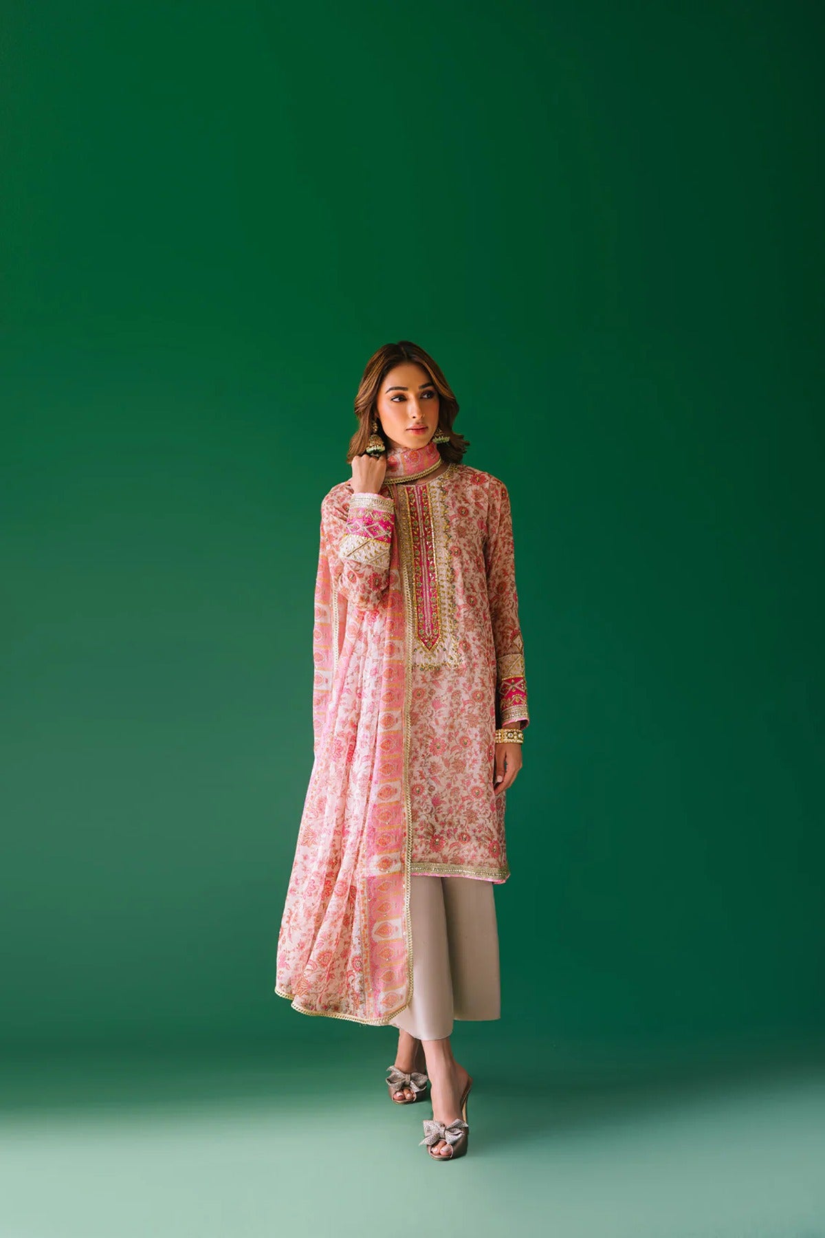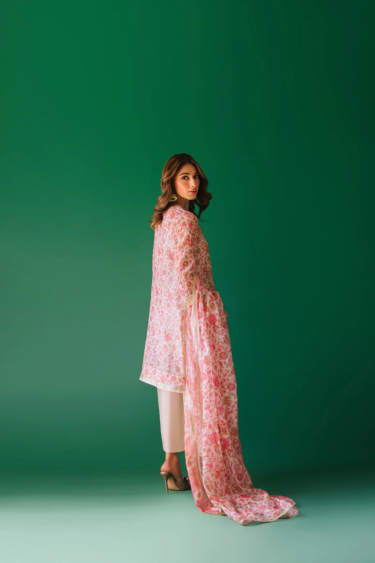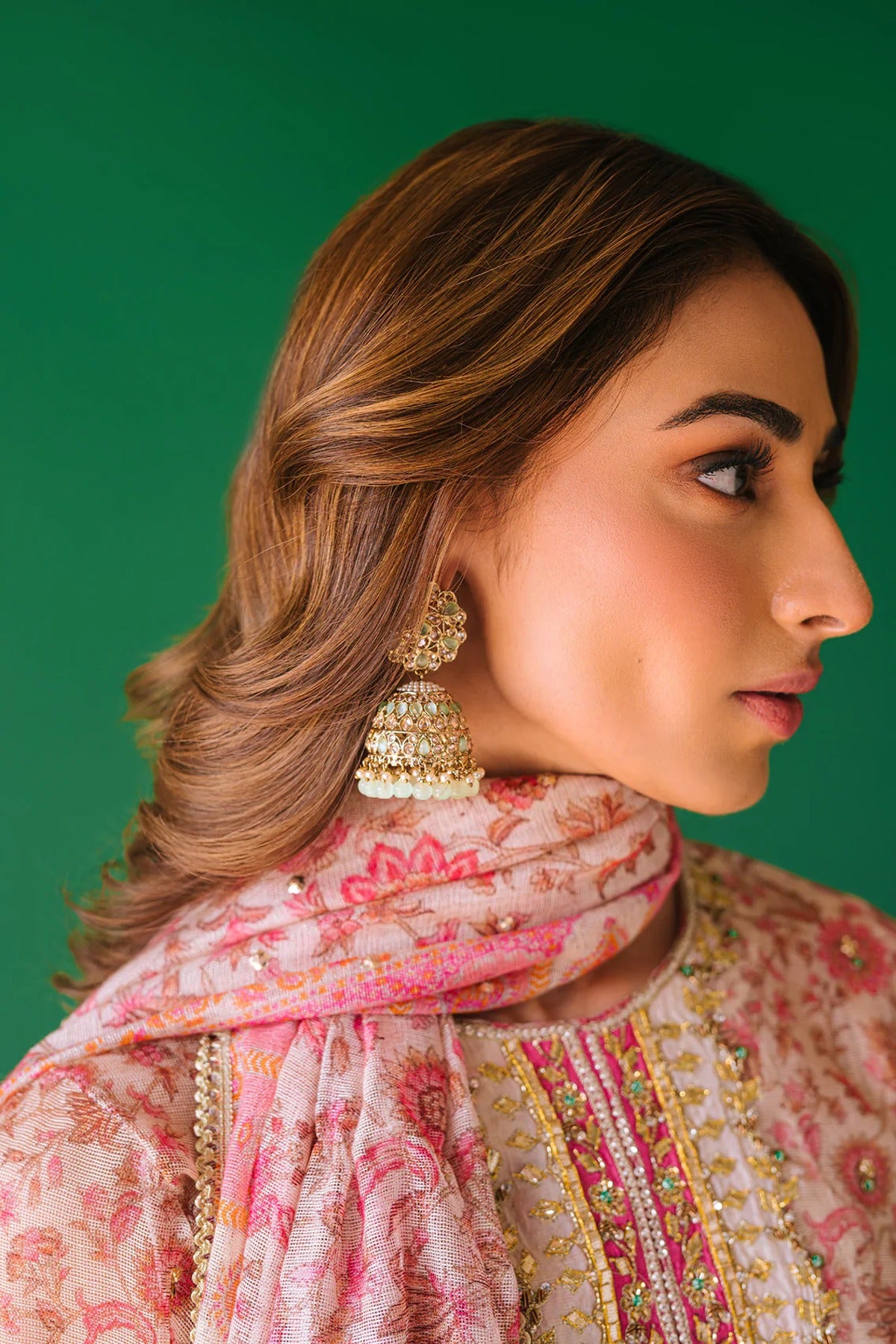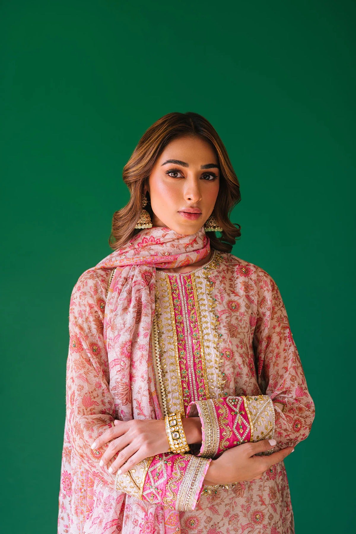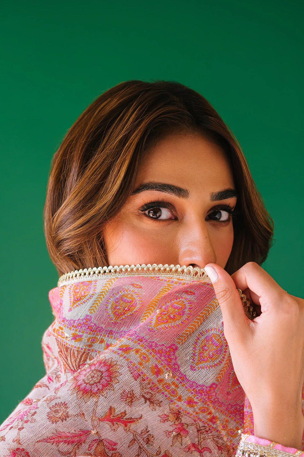- Dupatta is digitally printed cotton net with sequins spray all over and lace detailing.