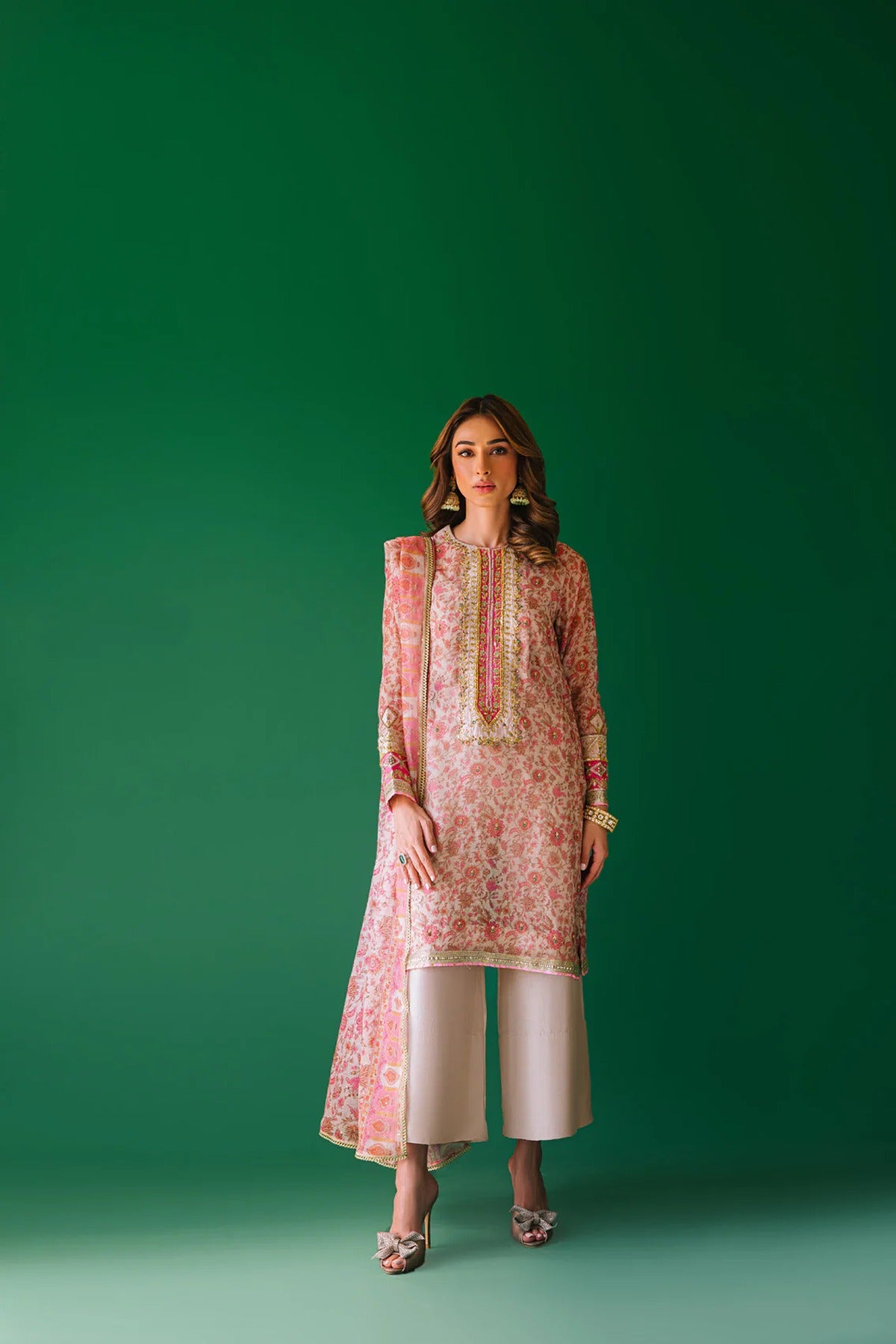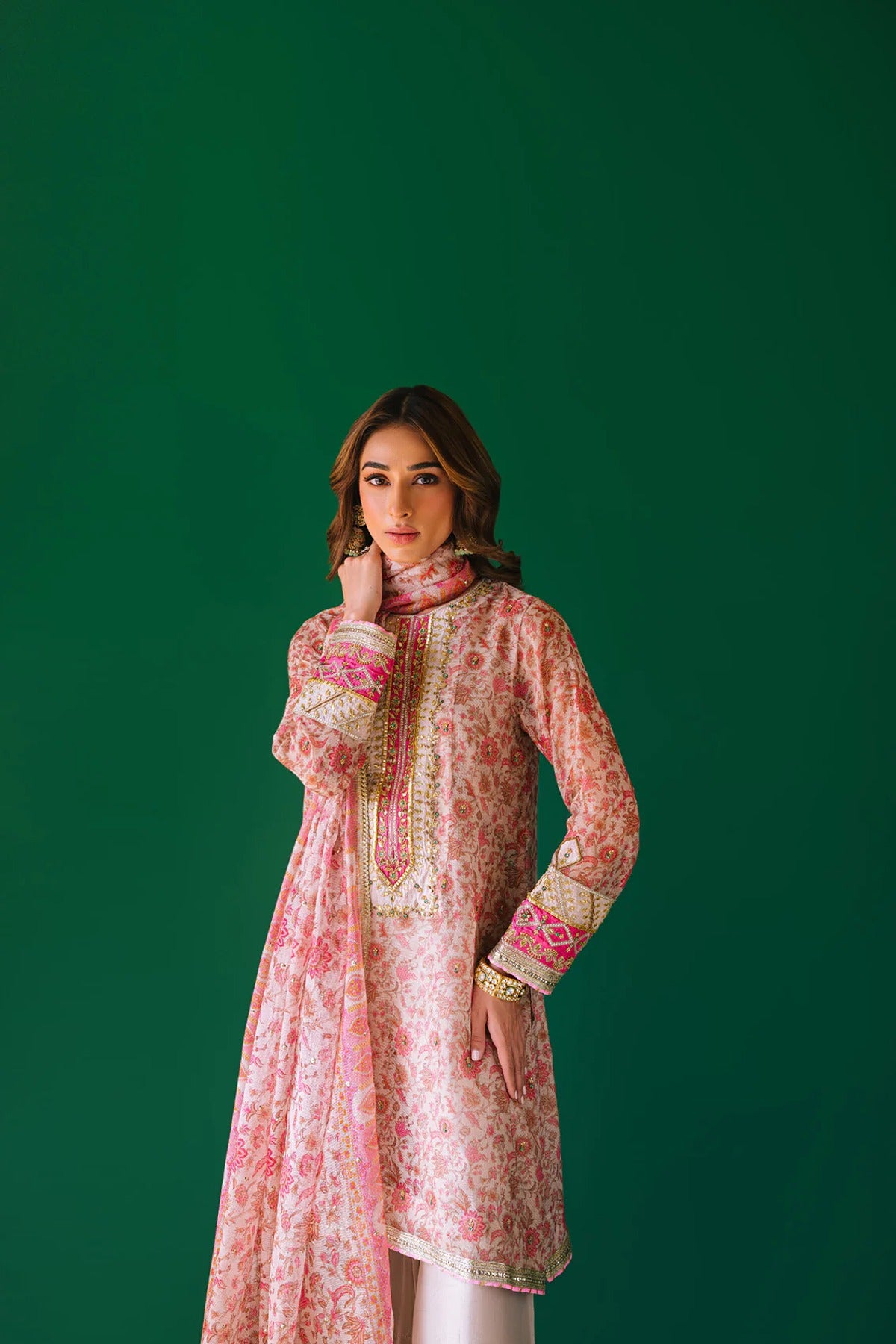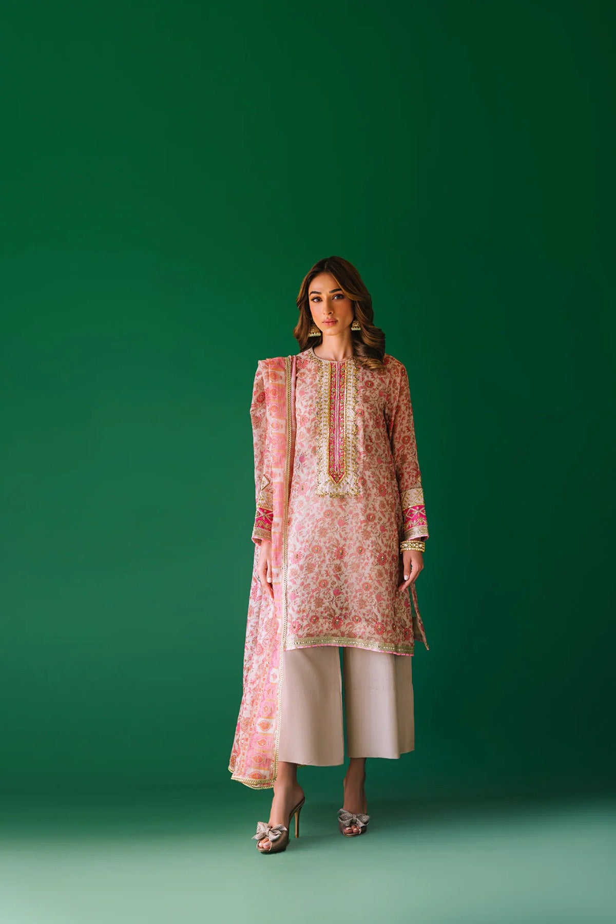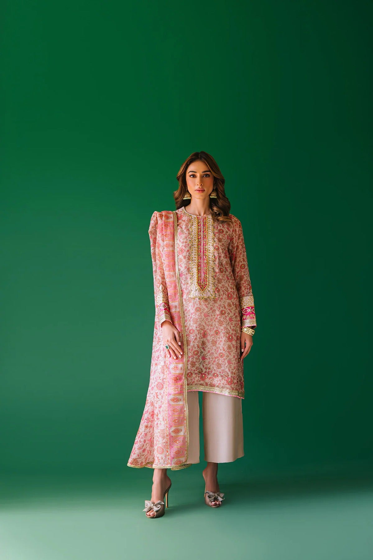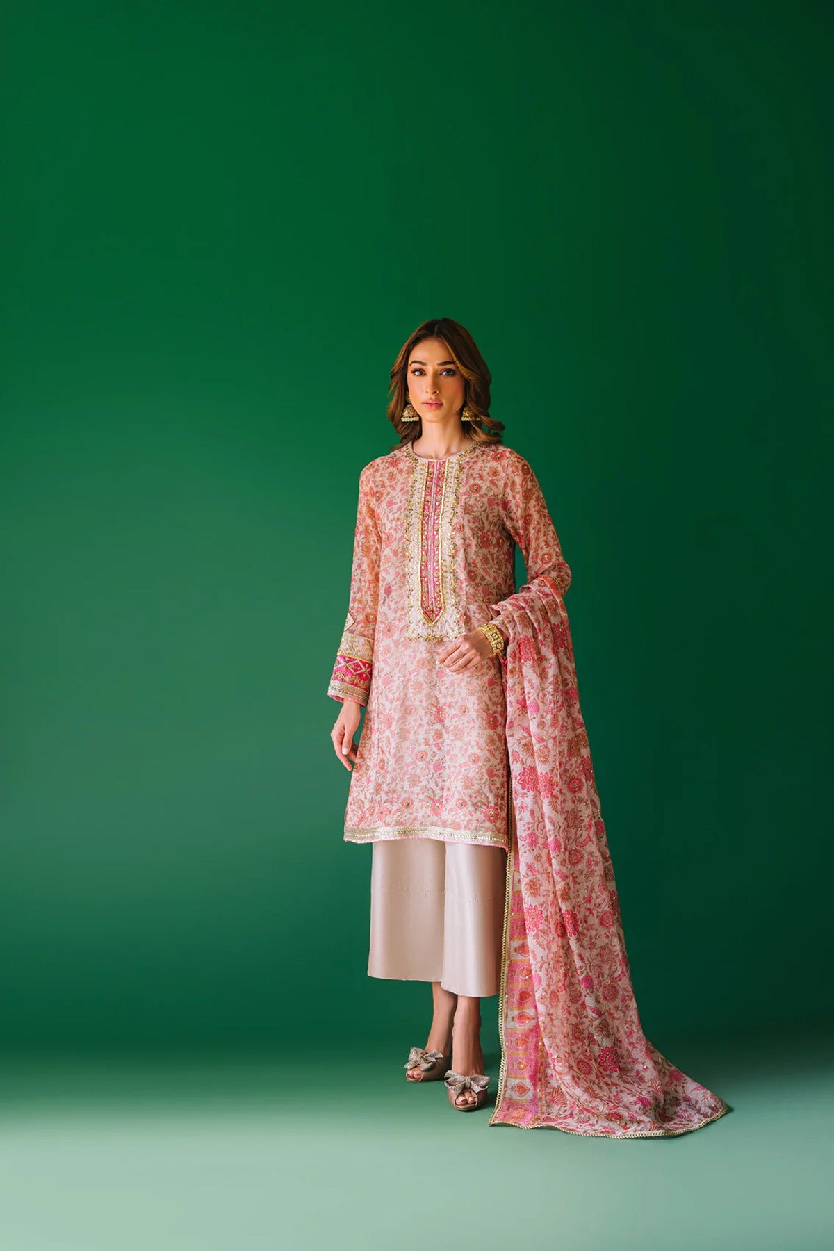 - Dupatta is digitally printed cotton net with sequins spray all over and lace detailing.
