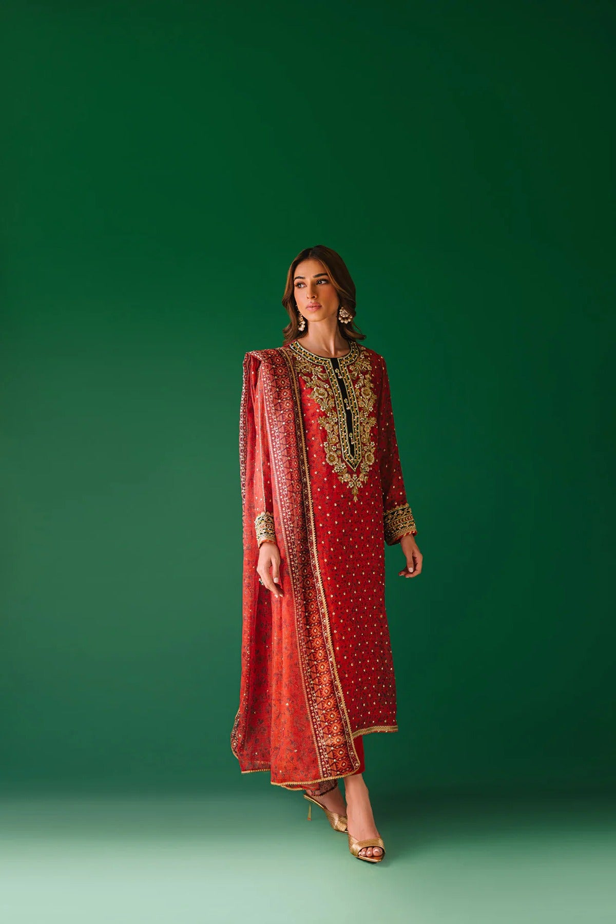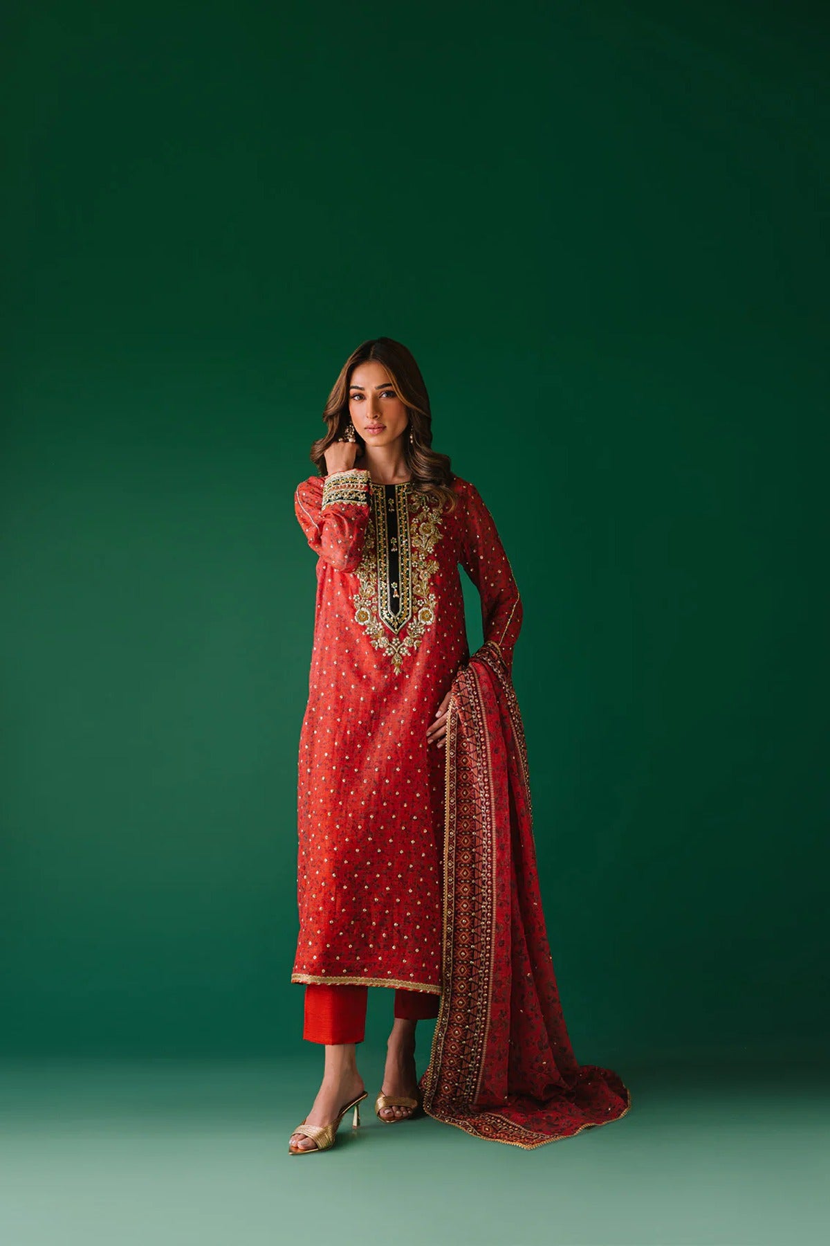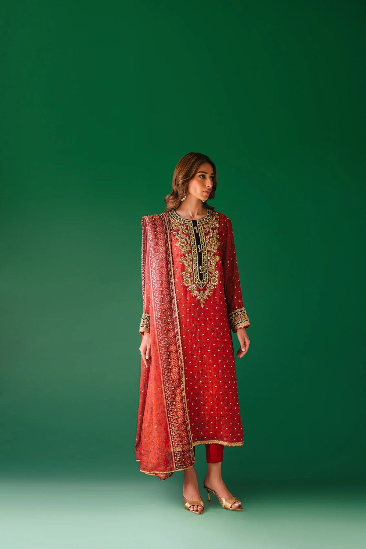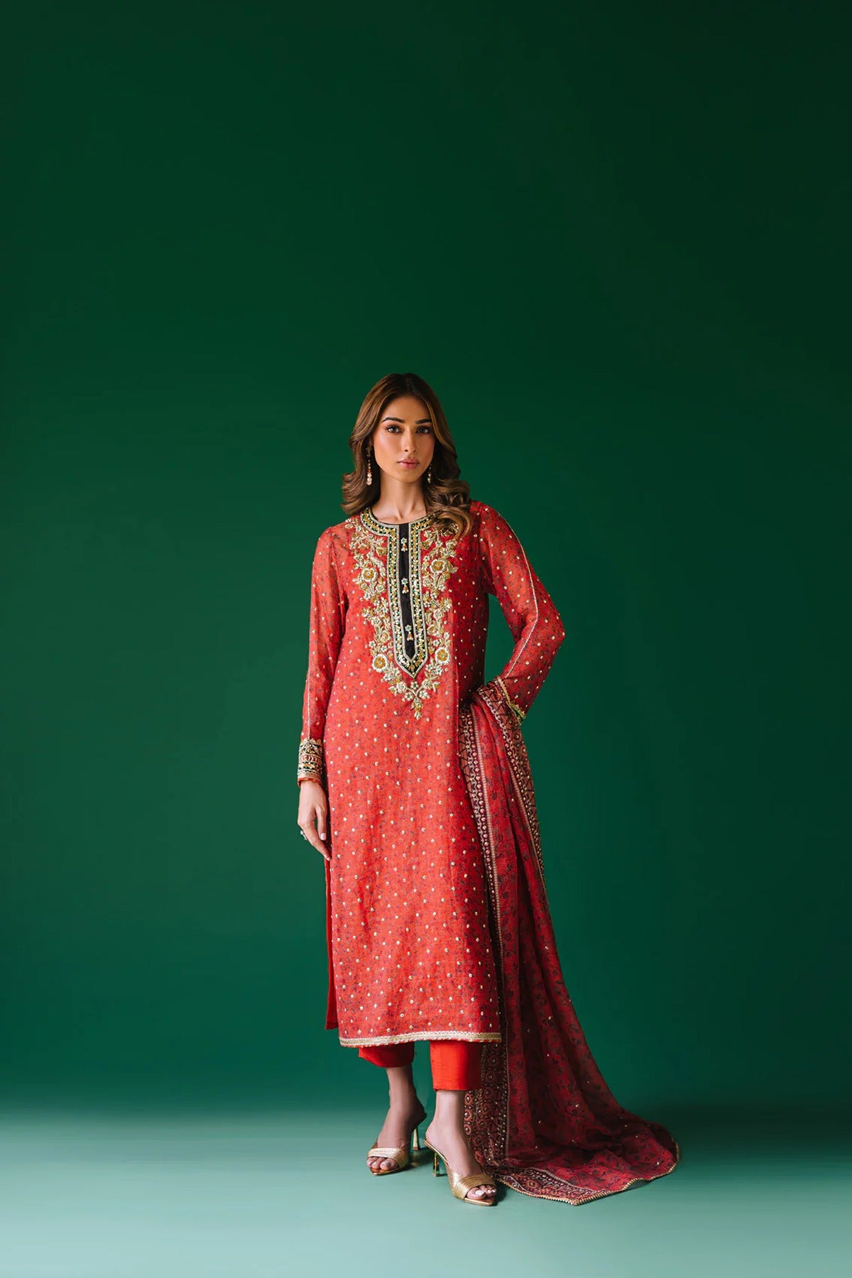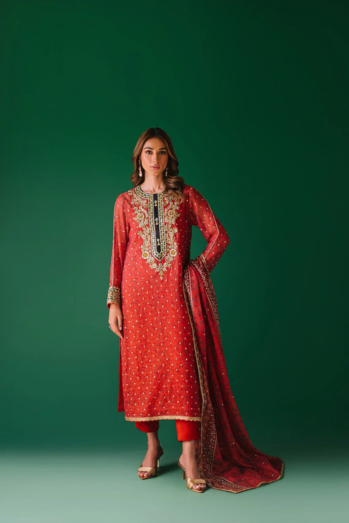 - Dupatta is digital print cotton net with sequins spray and lace detailing.