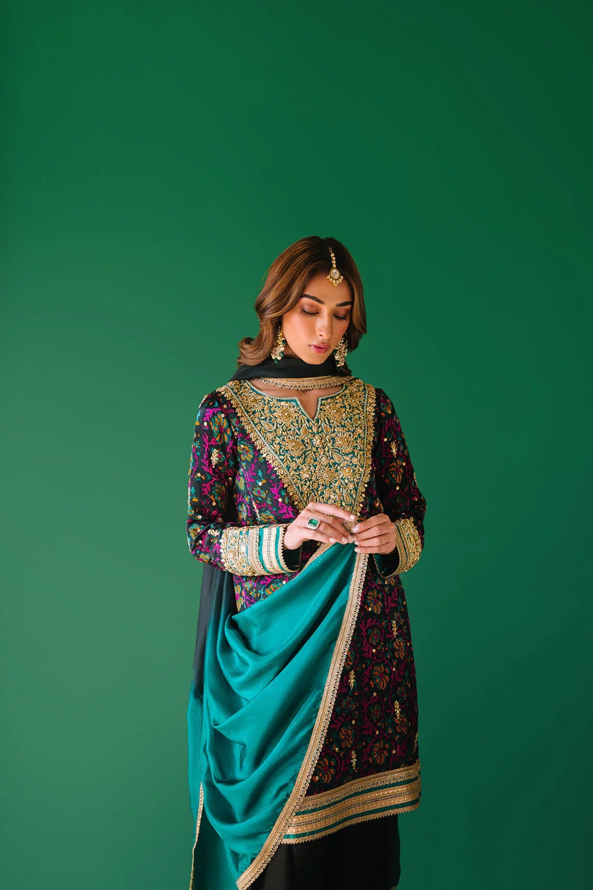 - Paired with a Korean rawsilk gota lace finished shalwar.