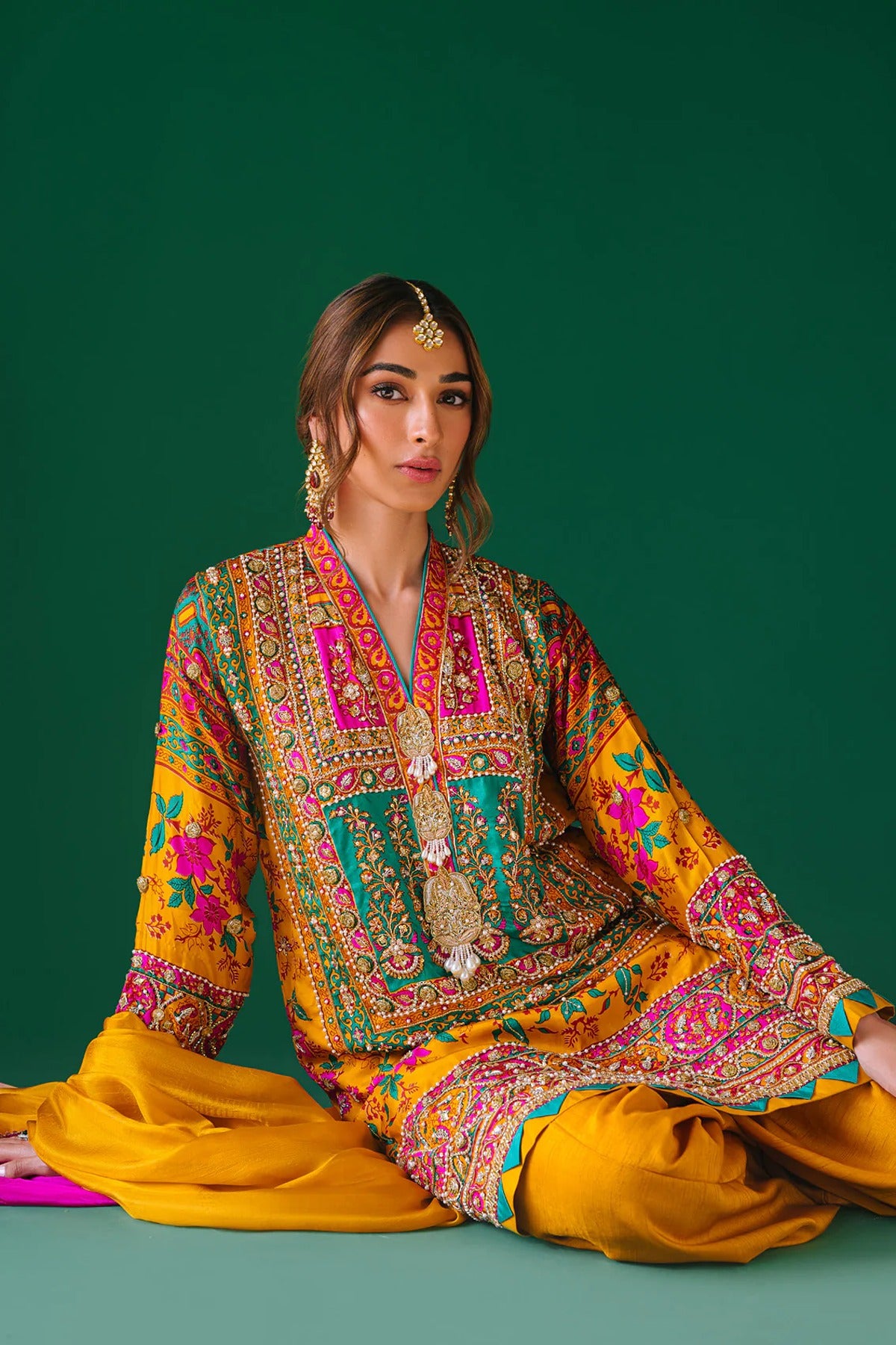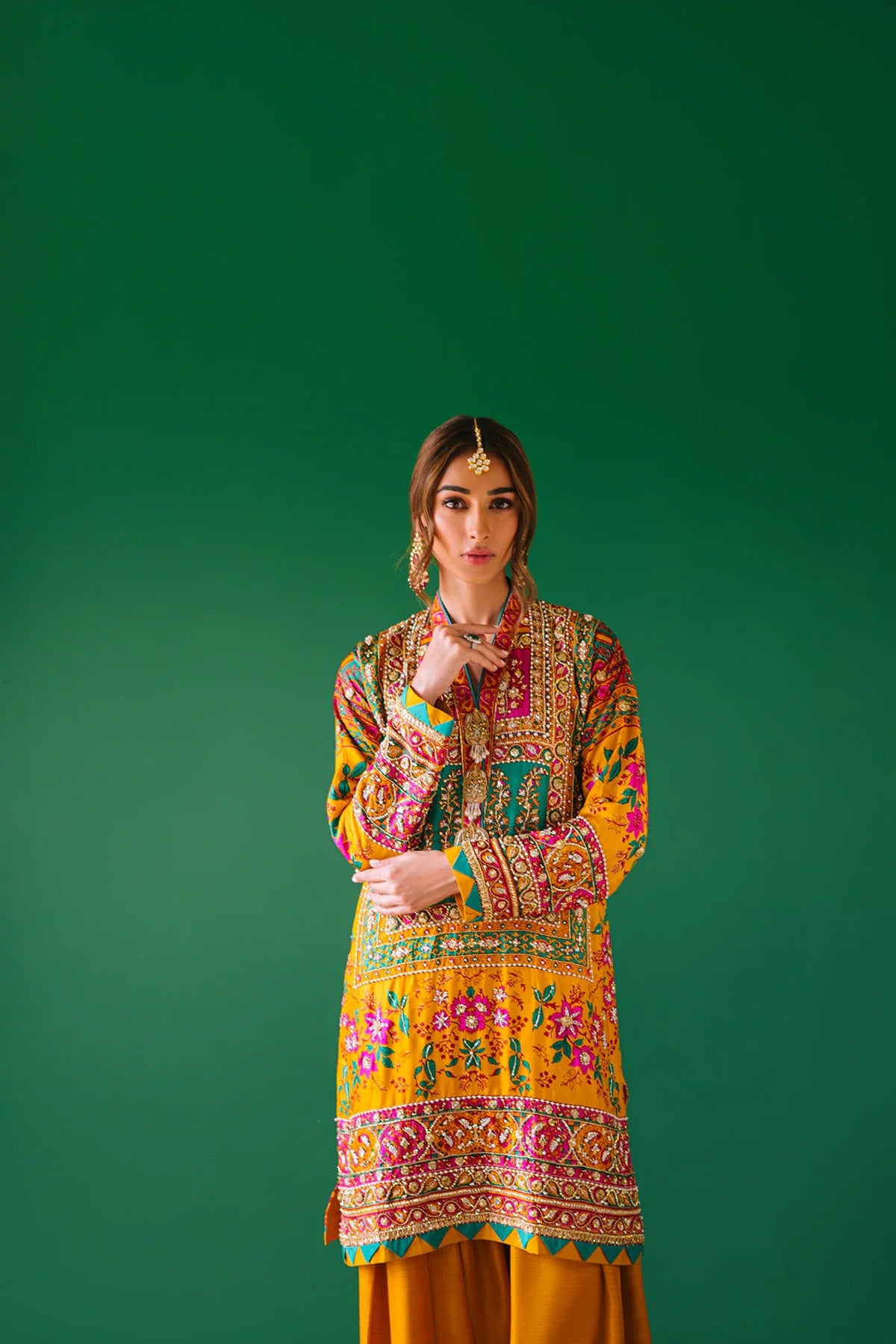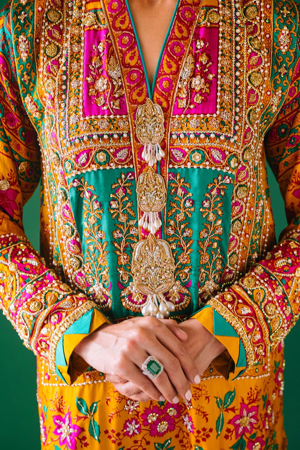 Paired with a Korean rawsilk khuli shalwar with gota detailing.