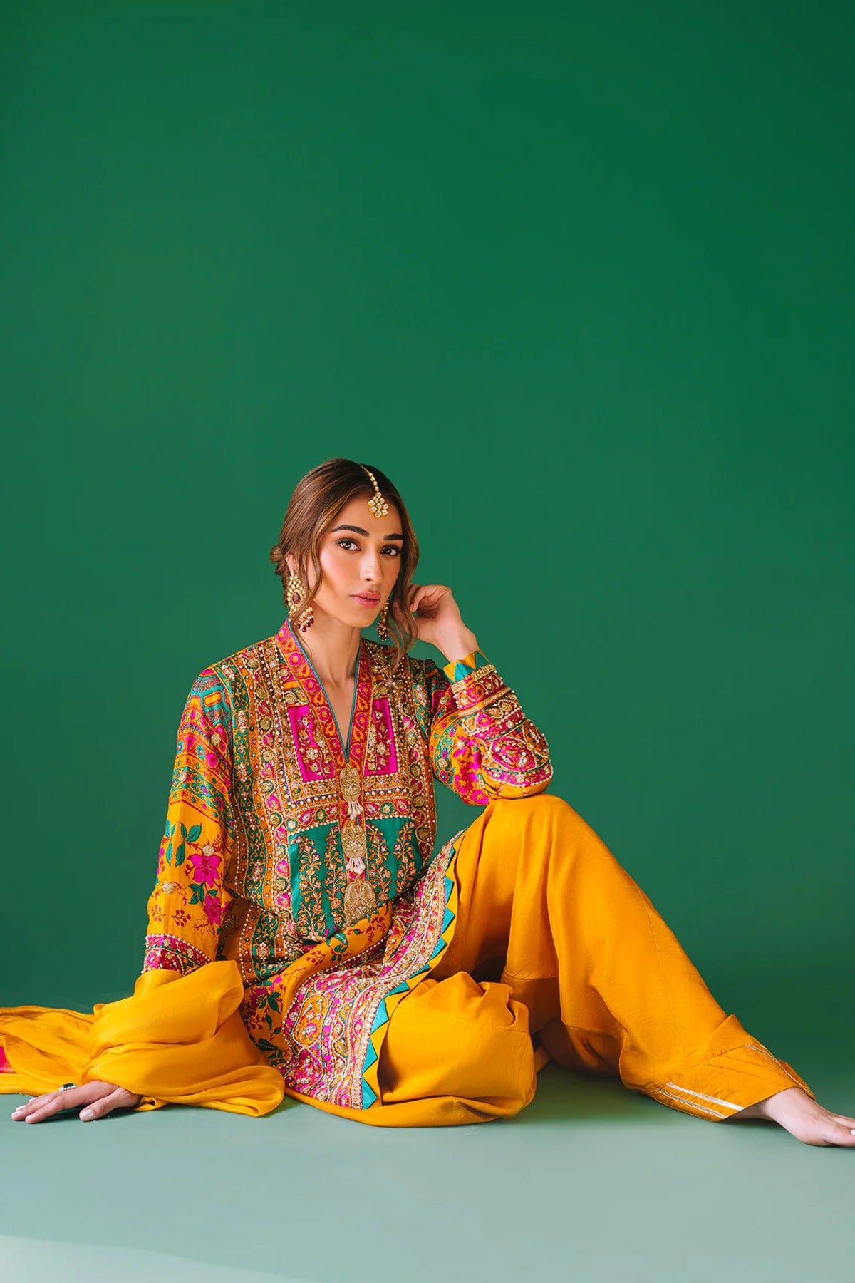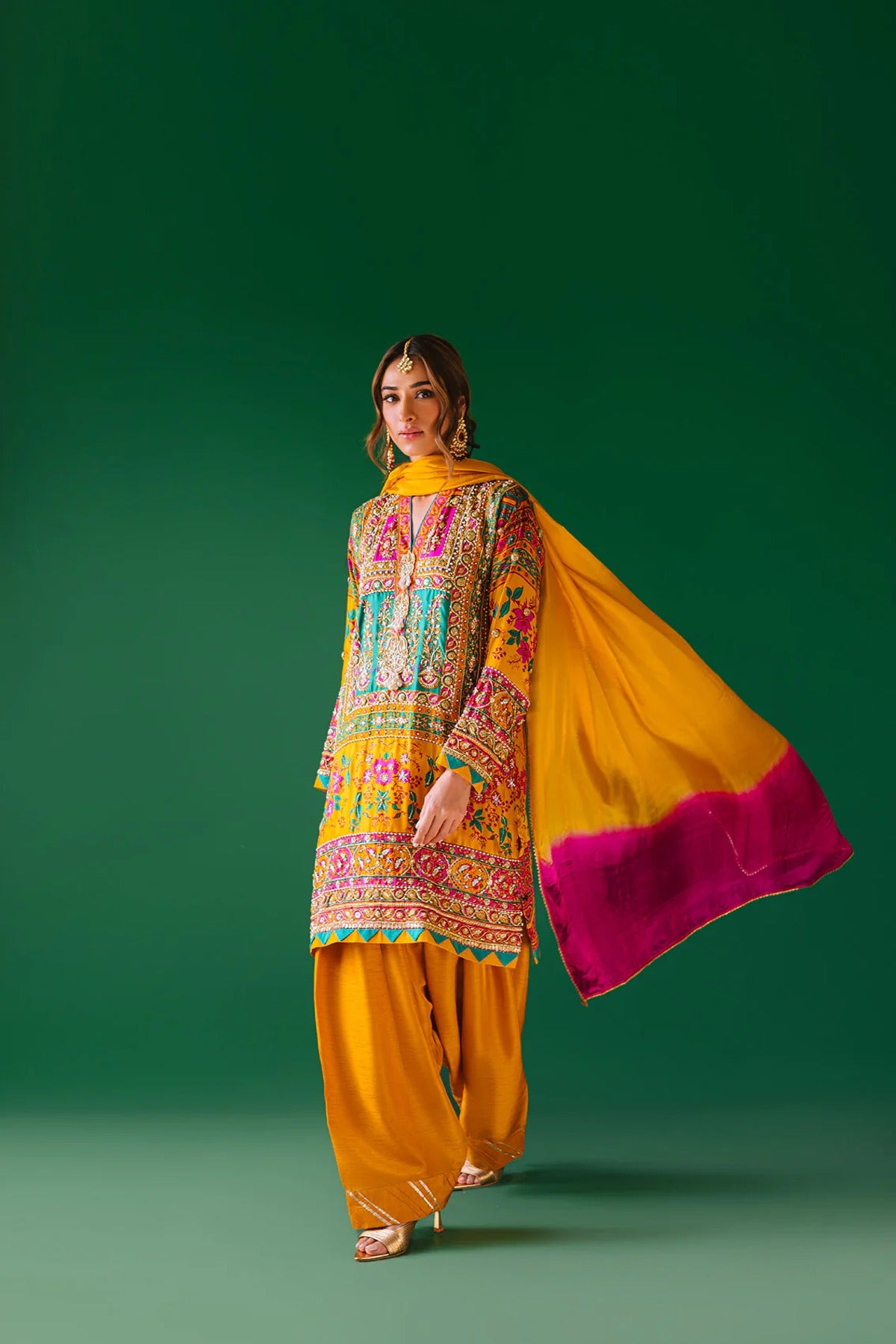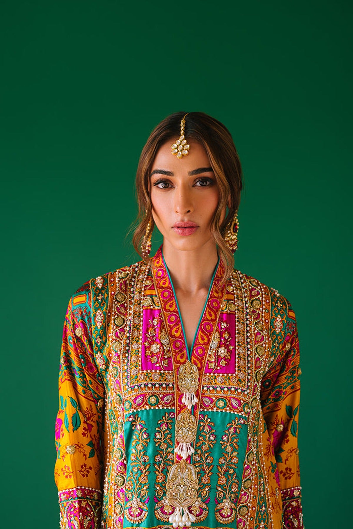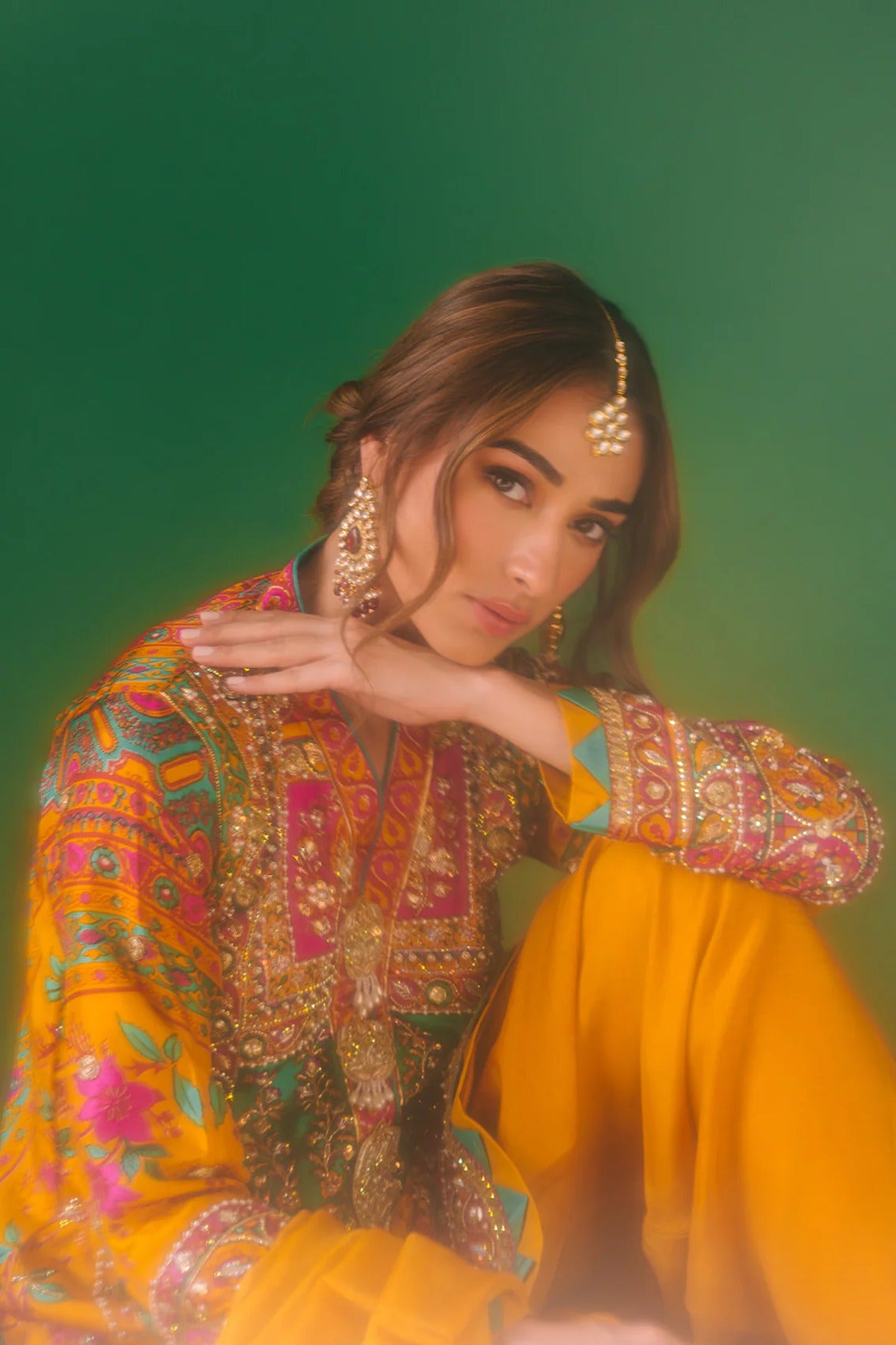 Paired with a Korean rawsilk khuli shalwar with gota detailing.