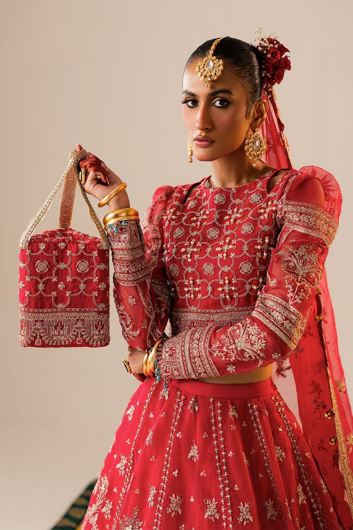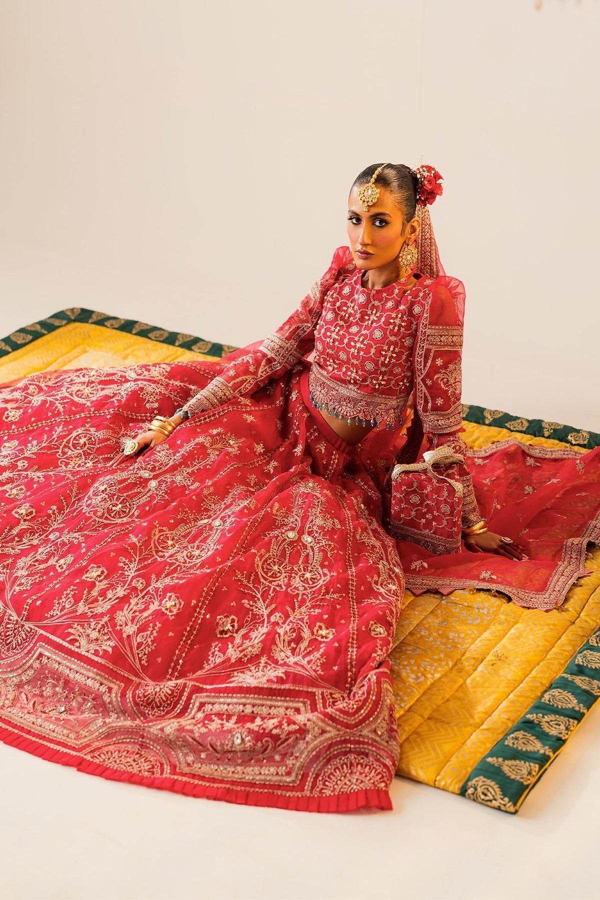Stunningly festive, Bahaar exclusively made on bewitching fuschia organza. The lehnga choli have the most stunning resham and tilla embroideries further beautified by sitara, stone and pearl detailing. The matching organza dupatta is fully embroidered for that show stopper look.