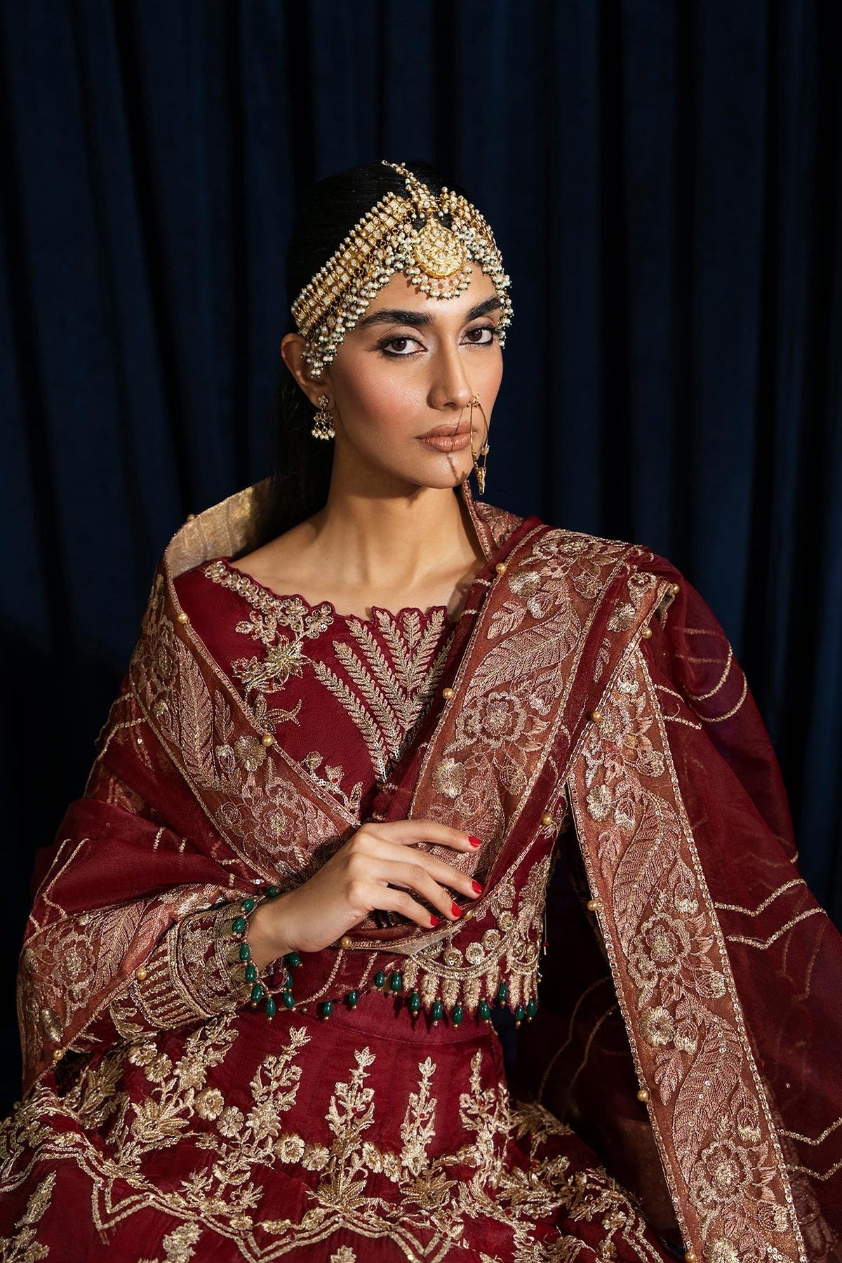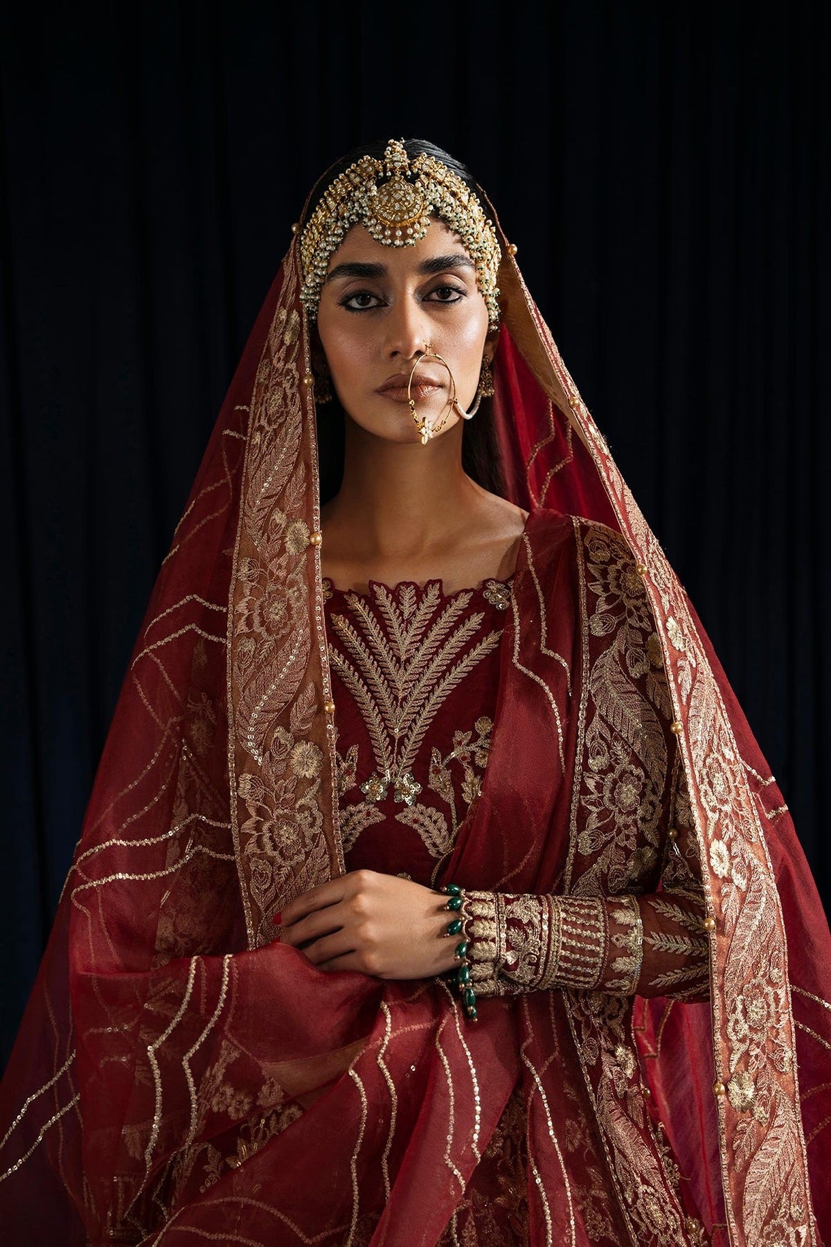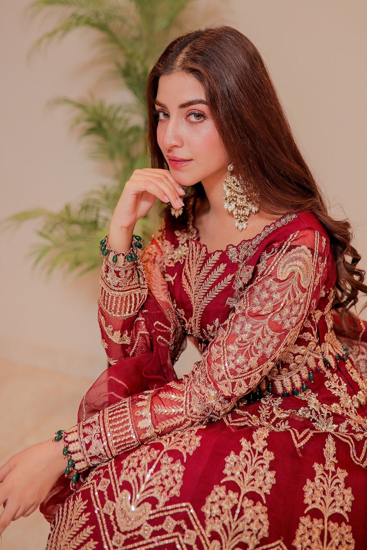 Wearing ‘Rajkumari’, the wearer feels more empowered than ever. With the perfect shade of red on the finest of organza;there is no comparison. A perfect balance of gold tilla and resham embroideries amplify the sheer beauty of this ensemble. Adding the Shurooq touch, sequins and hand applied embellishments sparkle brilliantly over the red. With an equally stunning organza dupatta, Rajkumari is truly now a queen.