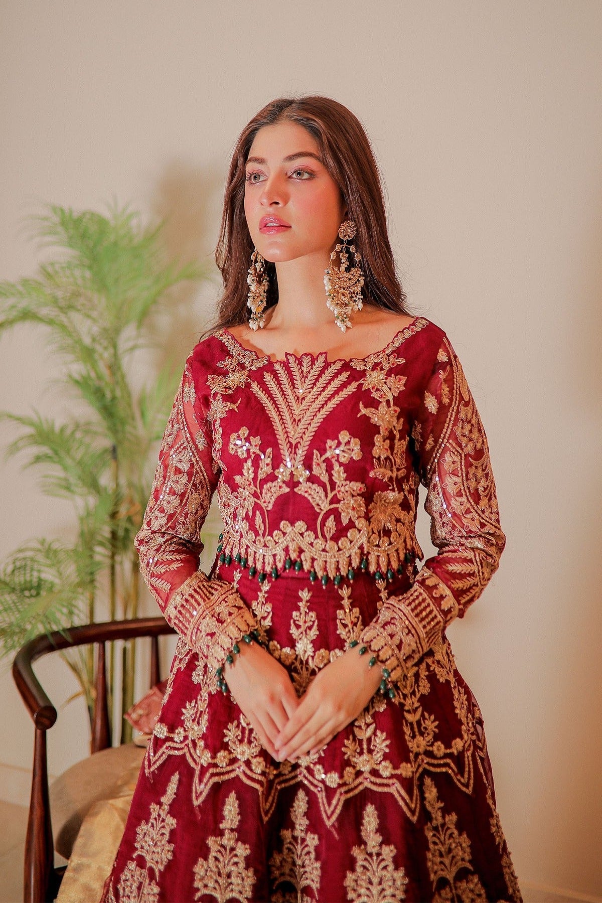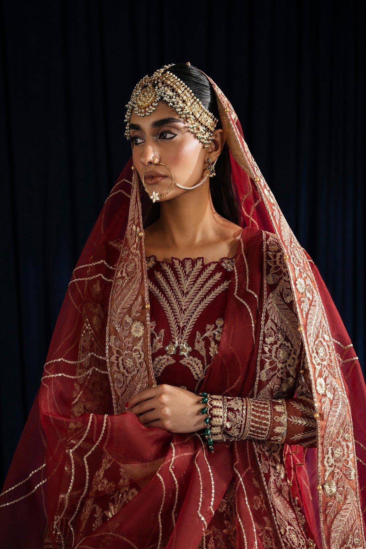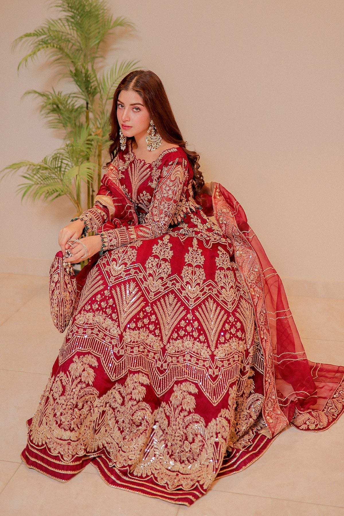 Wearing ‘Rajkumari’, the wearer feels more empowered than ever. With the perfect shade of red on the finest of organza;there is no comparison. A perfect balance of gold tilla and resham embroideries amplify the sheer beauty of this ensemble. Adding the Shurooq touch, sequins and hand applied embellishments sparkle brilliantly over the red. With an equally stunning organza dupatta, Rajkumari is truly now a queen.