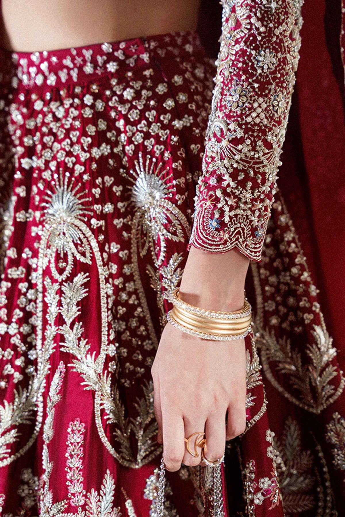 - Main Dupatta With Mukesh, Gota, Pearls, And Scatter Florals; Second Dupatta With Floral Borders And Sequence Spray