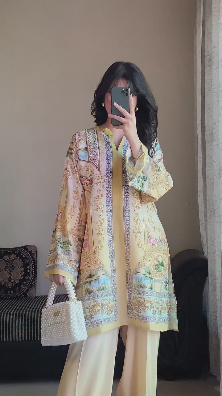 Say hello to summer with Lemon Lace — a buttery-soft lawn silk co-ord set that brings sunshine to your wardrobe. With its delicate lemon-yellow base, intricate floral print, and soft lace detailing, this look is made for garden brunches, weekend getaways, and sun-drenched days. Breezy yet refined, Lemon Lace is your go-to for effortless charm and timeless summertime style.