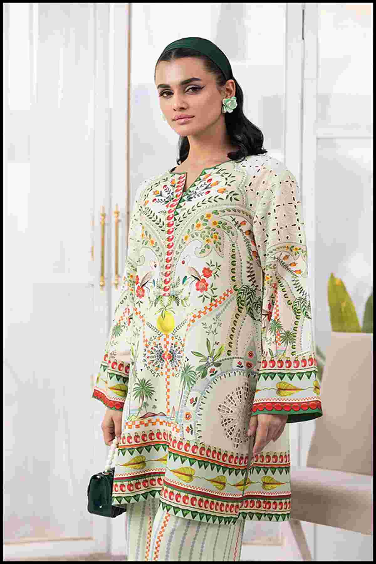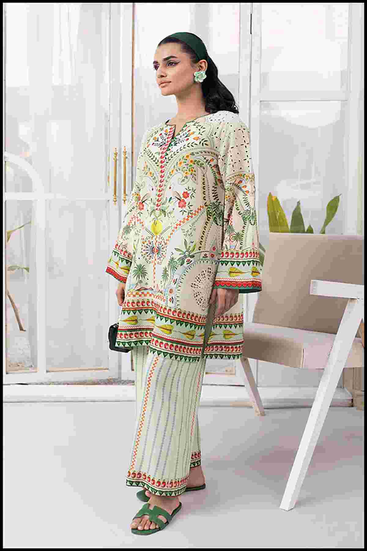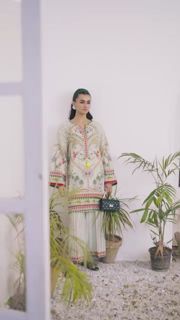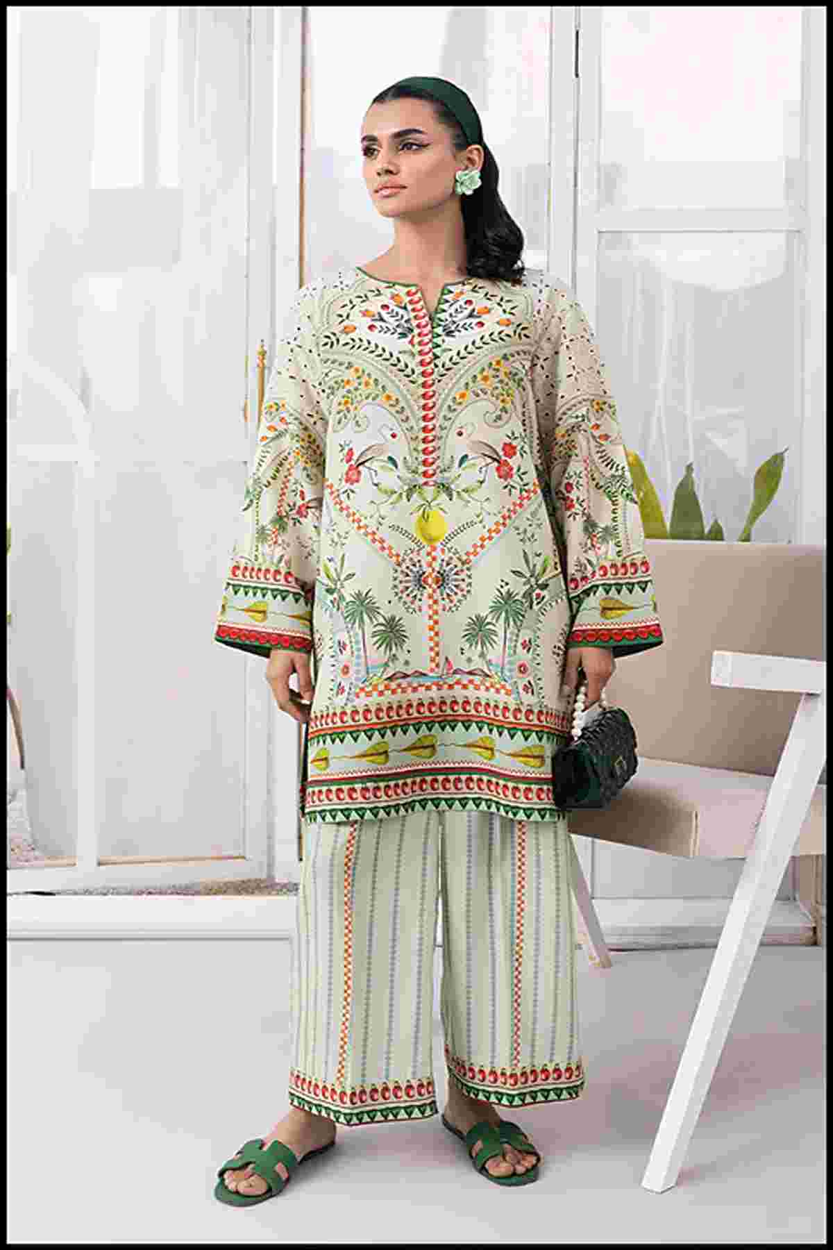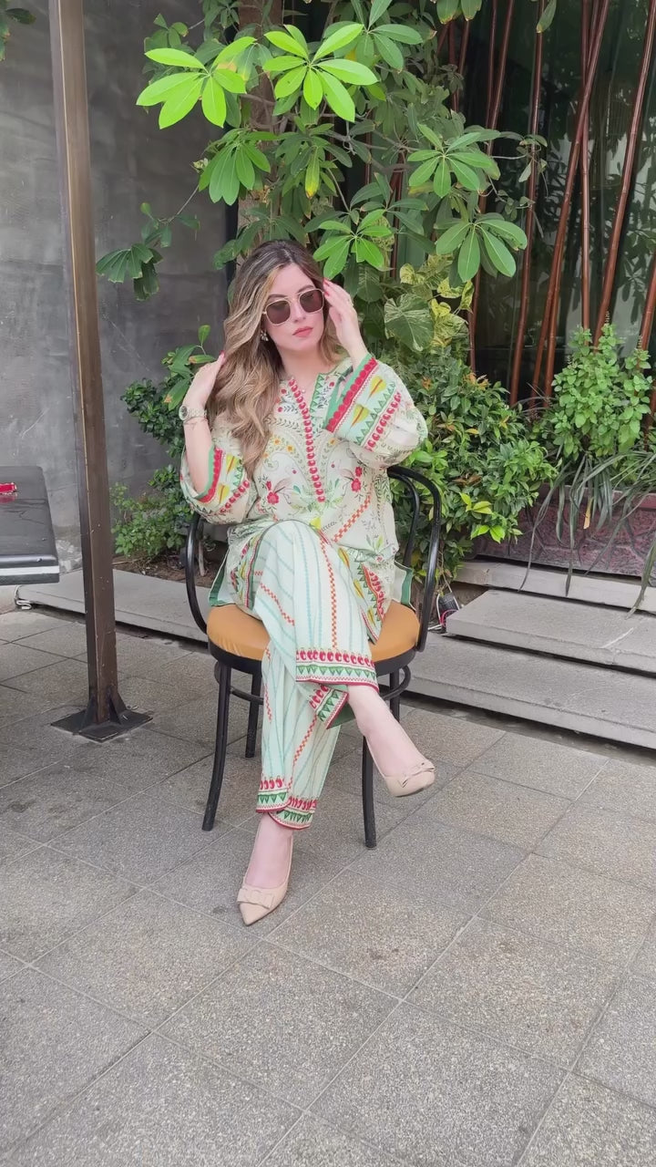Bask in the soft glow of summer with Mint Bloom — a refreshing lawn co-ord set that captures the essence of cool sophistication. The soothing mint base is brought to life with vibrant accents of coral, leafy greens, and delicate florals, creating a harmonious palette that feels both dreamy and grounded. Featuring a relaxed-fit kurta with playful botanical prints and matching striped trousers, this ensemble is the perfect blend of comfort and charm. Whether you’re brunching or hosting, Mint Bloom makes a subtly striking statement.