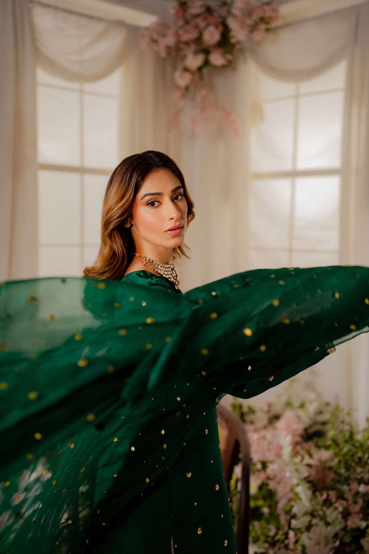 Our intricately handcrafted pure heavy Mukesh dupatta complete the look. It’s an absolute work of art and a labor of love making it a unique piece on its own.