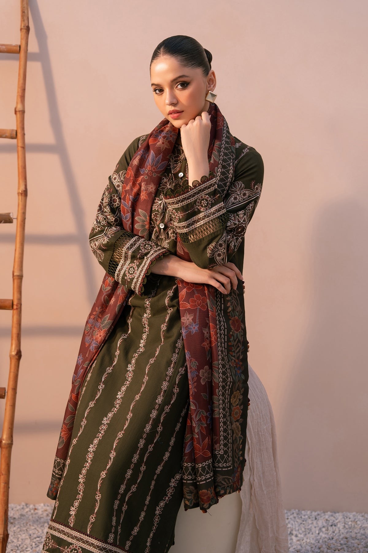 - Embroidered Slub Khaddar F/B Border