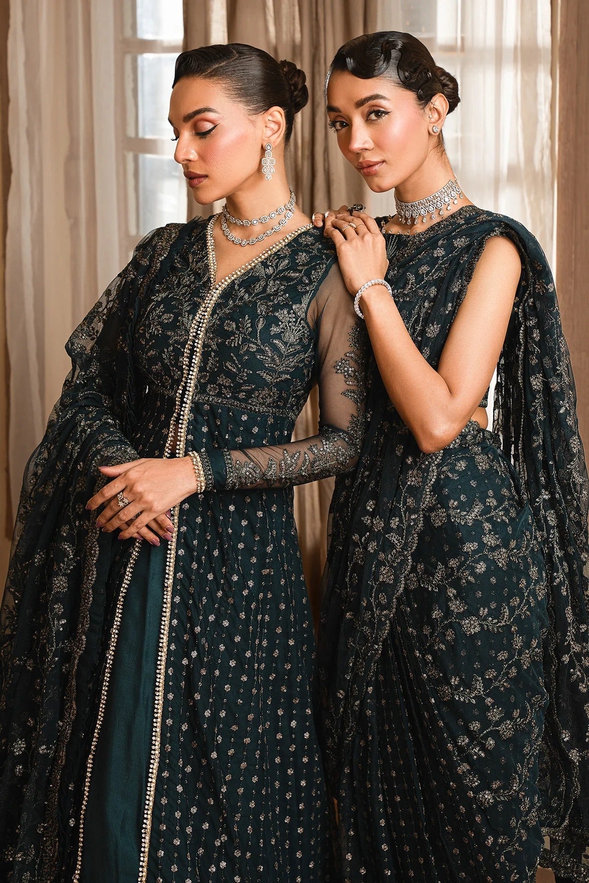 Sleeves: Sequins Embroidered Net