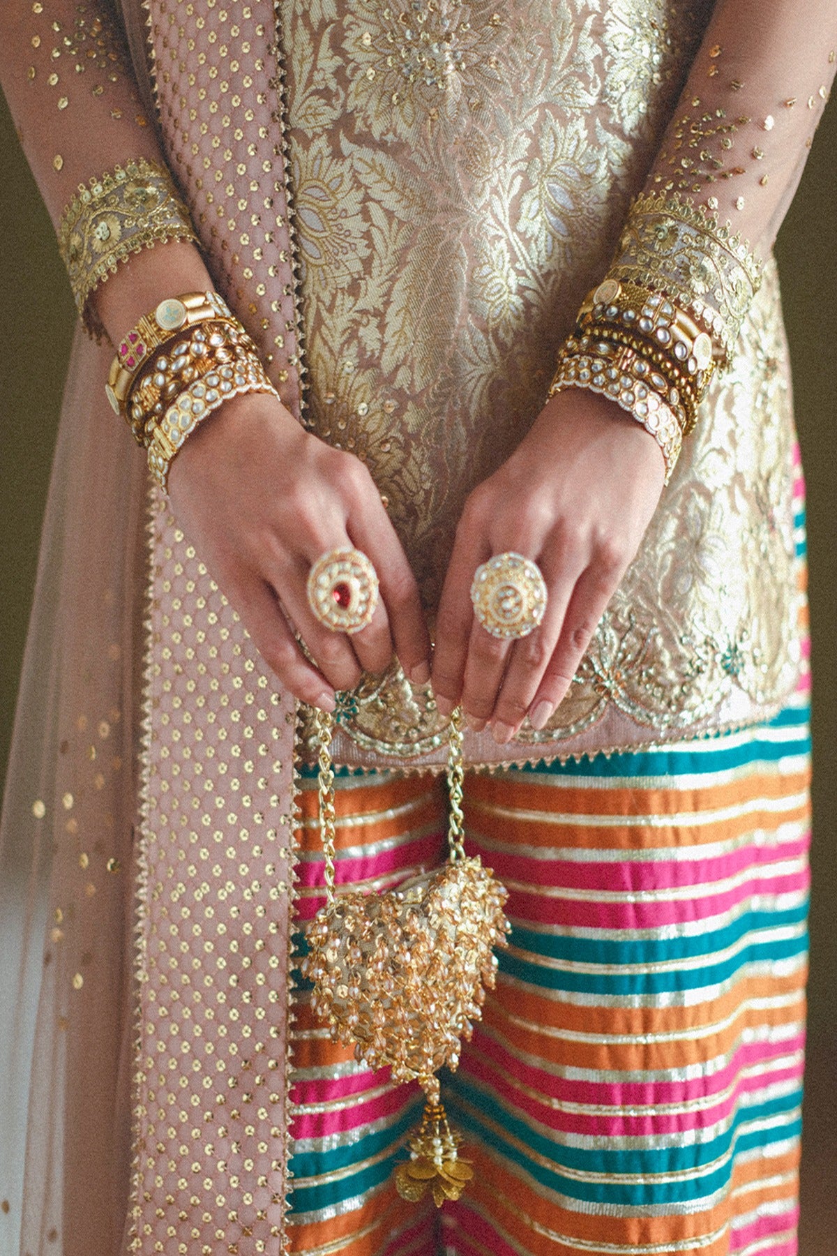 Hari Bhari - Rooted in tradition and refined with intricate craftsmanship, Hari Bhari features a boat neck short shirt beautifully hand embellished with intricate dabka, nakshi, sequins, pearls, crystals, and delicate French knots. The look is paired with flared chatta patti pants that bring a bold and festive edge to the ensemble. A net dupatta, softly adorned with a sequin spray and bordered with refined detailing, adds a graceful finish. Tassel accents at the back, along with lace and lappa inserts, complete this vibrant outfit designed for celebratory flair.